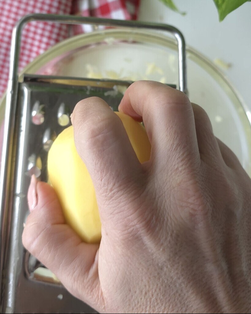Begin met het wassen en schillen van de aardappelen, en rasp ze vervolgens met een grove rasp.