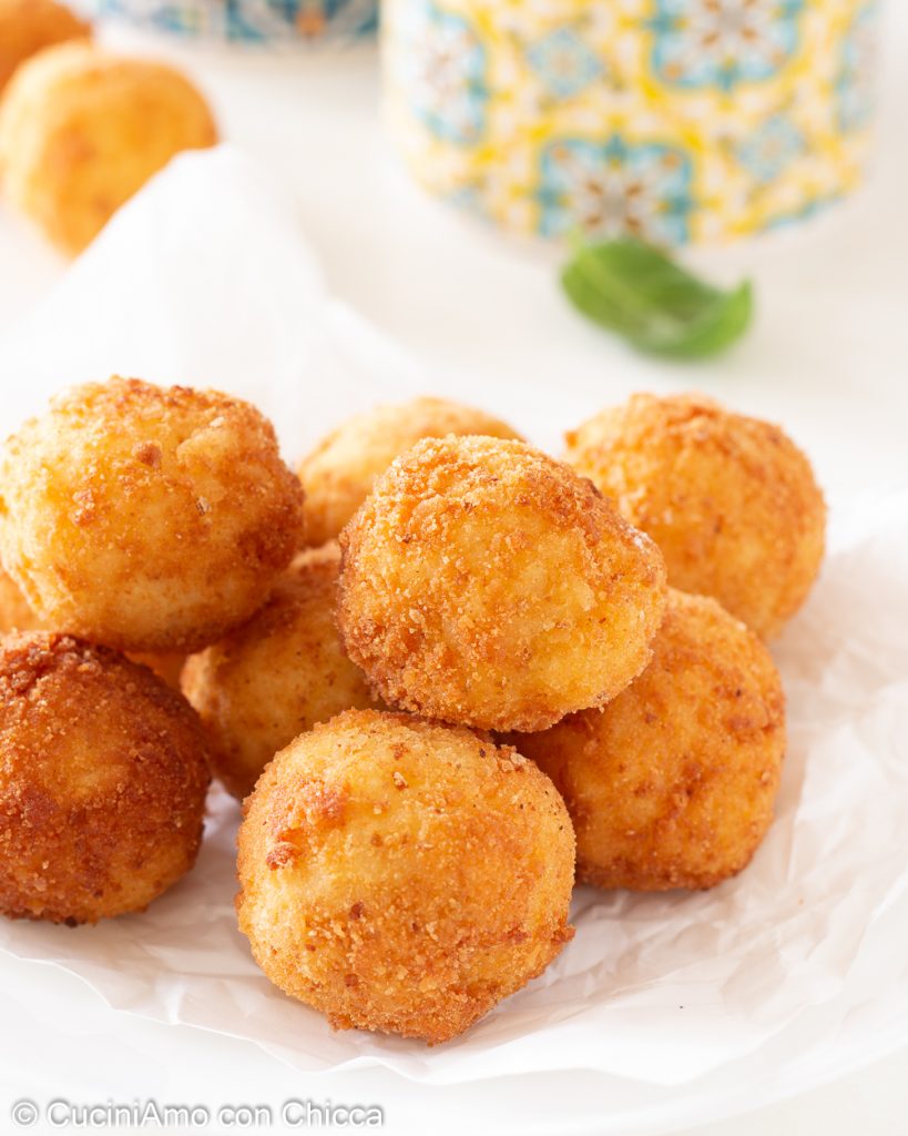 De arancini met kaas zijn een echte delicatesse! Het is niet ingewikkeld om ze te maken; ze zijn een Siciliaanse specialiteit gemaakt met rijst en ragù, maar in mijn versie heb ik ervoor gekozen om de rijst te mengen met verschillende kazen, om een nog snellere recept te creëren. Ze zijn echt heerlijk! Hier is het recept en de stap-voor-stap foto’s. Het is ideaal om de arancini direct na het frituren warm en smeltend te serveren als voorgerecht samen met de Siciliaanse rosticceria.