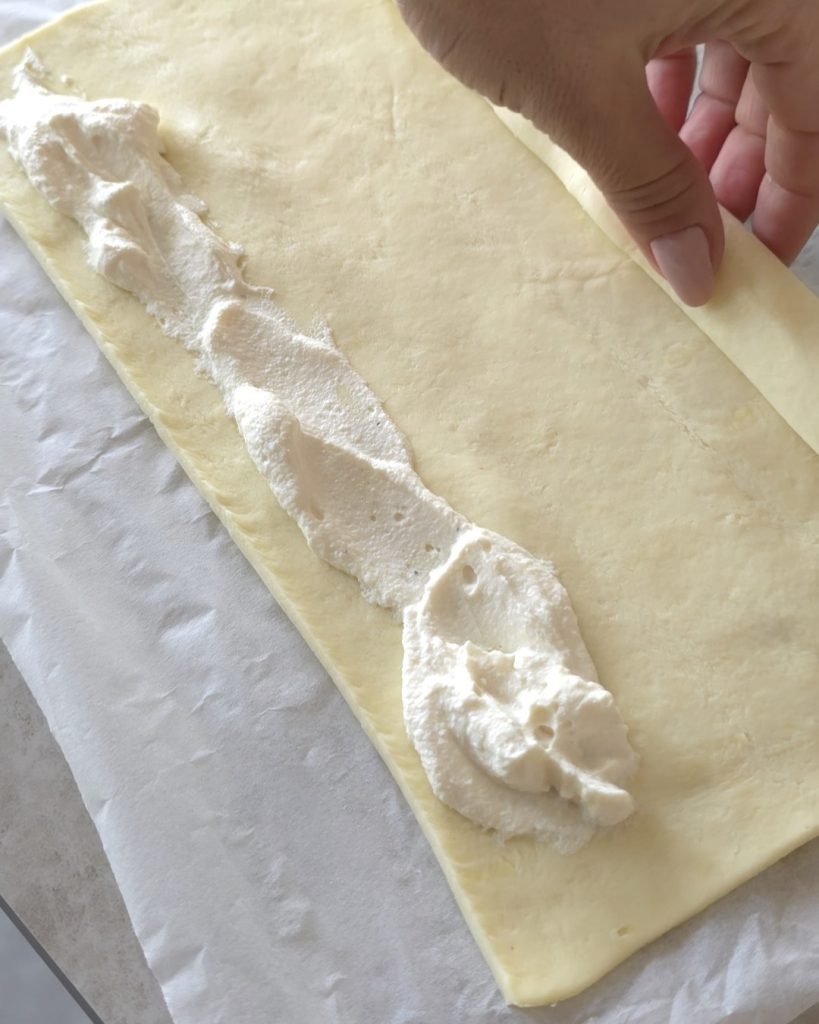 Vul de randen met de ricotta en rol de randen van elk gemaakt rechthoek op, zodat je een kleine rand aan de lange zijden creëert.