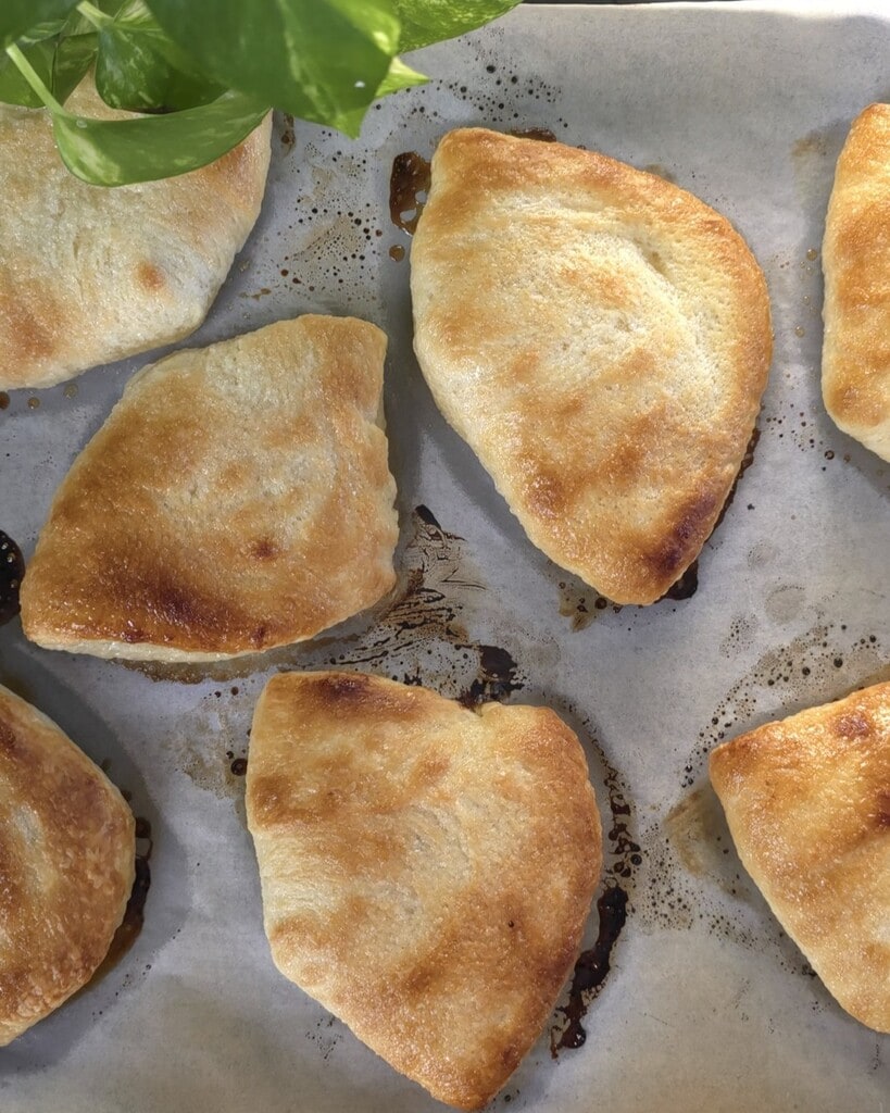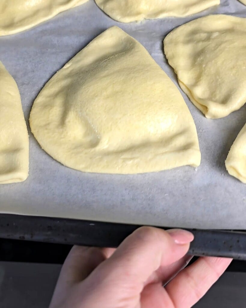 • Vouw het deeg dubbel en sluit de randen goed af. Herhaal deze handeling met de rest van de ingrediënten en de vullingen die je wilt.