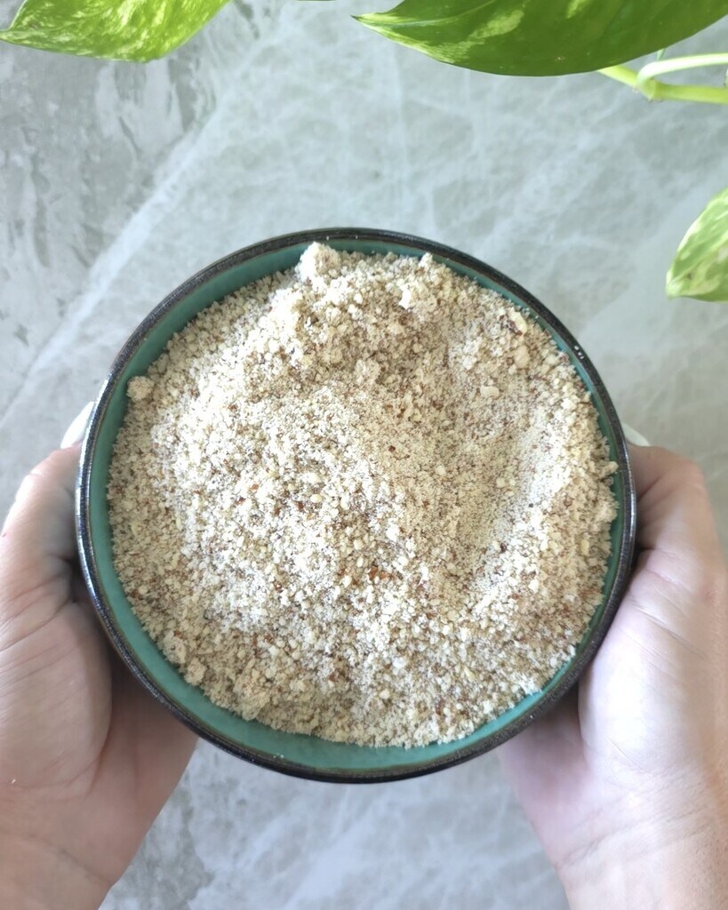 • In een mooie ruime hakmolen, plaats de amandelen en maal ze een paar seconden, tot ze grof gemalen zijn.