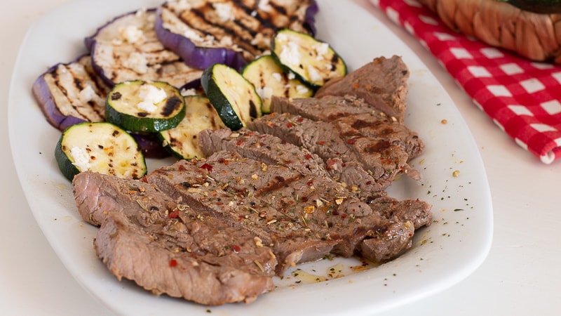 Hoe gesneden runderbiefstuk met gegrilde groenten te maken