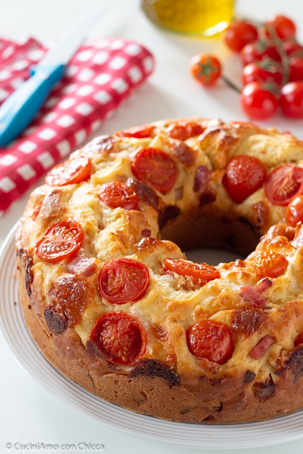 De HEERLIJKE EN ZACHTE HARTIGE CAKE Snelle Recept is de klassieke hartige cake die mijn familie zo lekker vindt. Zacht en verrukkelijk, ik heb het gevuld met gekookte ham, scamorza en cherrytomaatjes. Het recept is echt eenvoudig en praktisch, het kan worden geserveerd als aperitief of tweede gang, misschien vergezeld van verse seizoensgroenten. Heerlijk vers uit de oven, maar ook koud is het uitstekend, dus het is ideaal om te serveren bij een buffet of aperitief.
