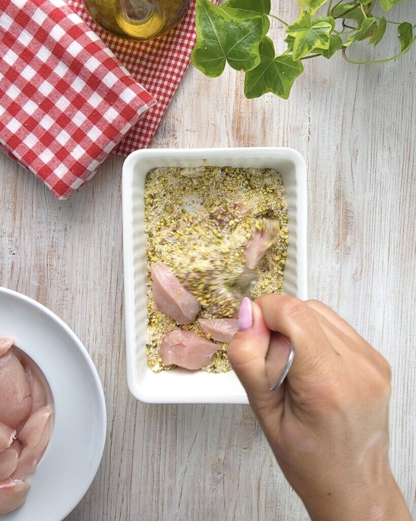 Kipstukjes met pistachenoten, zijn een heerlijk, eenvoudig en origineel hoofdgerecht.