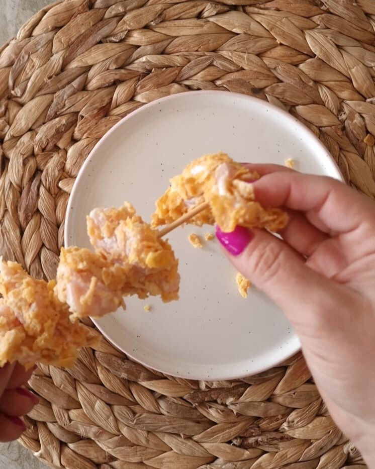 De krokante kipspiesen zijn heerlijk! De kipfilet blijft van binnen zacht en smaakvol, maar is van buiten knapperig dankzij de smaakvolle korst van cornflakes. Ik heb ook kipspiesen uit de oven en varkensspiesen met aardappelen gemaakt, het recept van vandaag is licht, gezond en supersnel te maken, ga snel het recept voorbereiden!