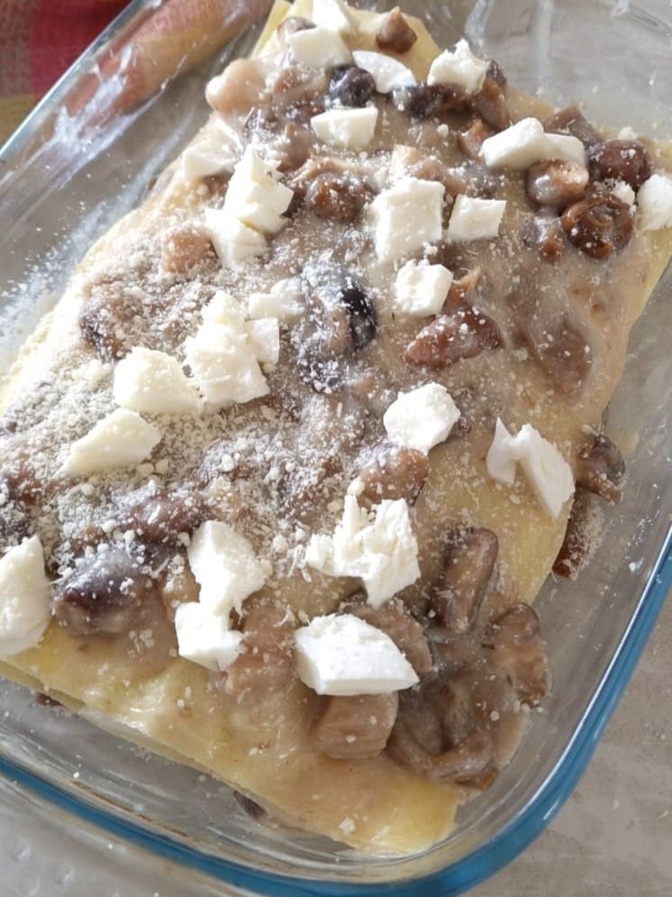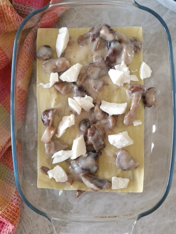 Bewaring en variatie van lasagne met champignons en bechamelsaus