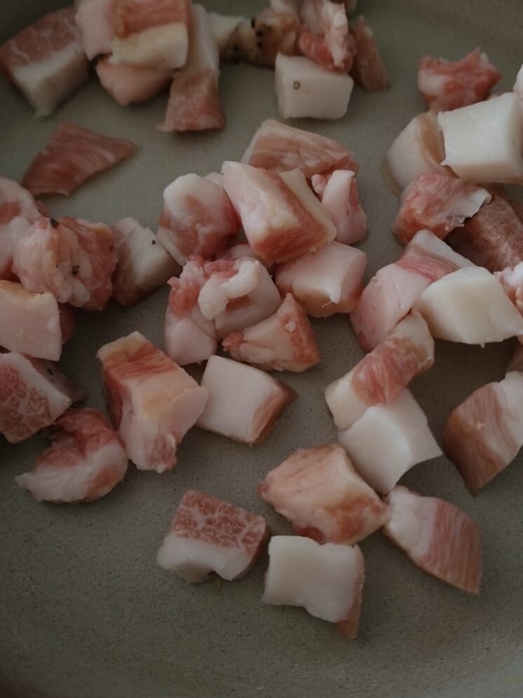 • Leg een beetje bechamelsaus op de bodem van een ovenschaal en begin alles samen te stellen, leg daarna de bladerdeeg, dan het krokante spek en de in stukjes gesneden mozzarella.