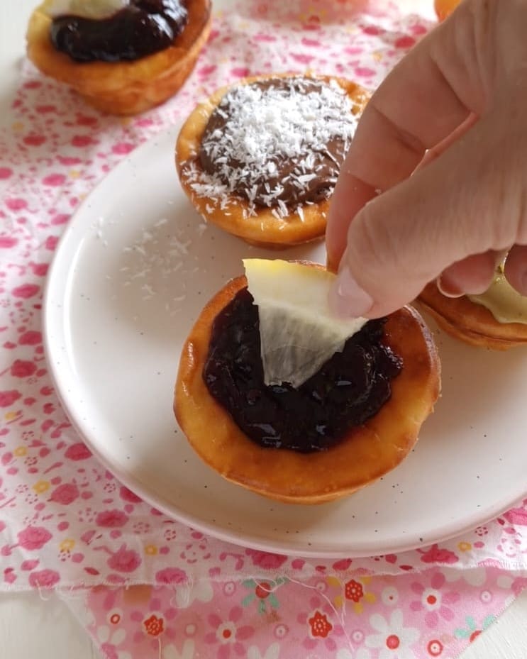 Als laatste stap, decoreer sommige met de jam en een schijfje citroen, en andere met Nutella en hazelnootstukjes.