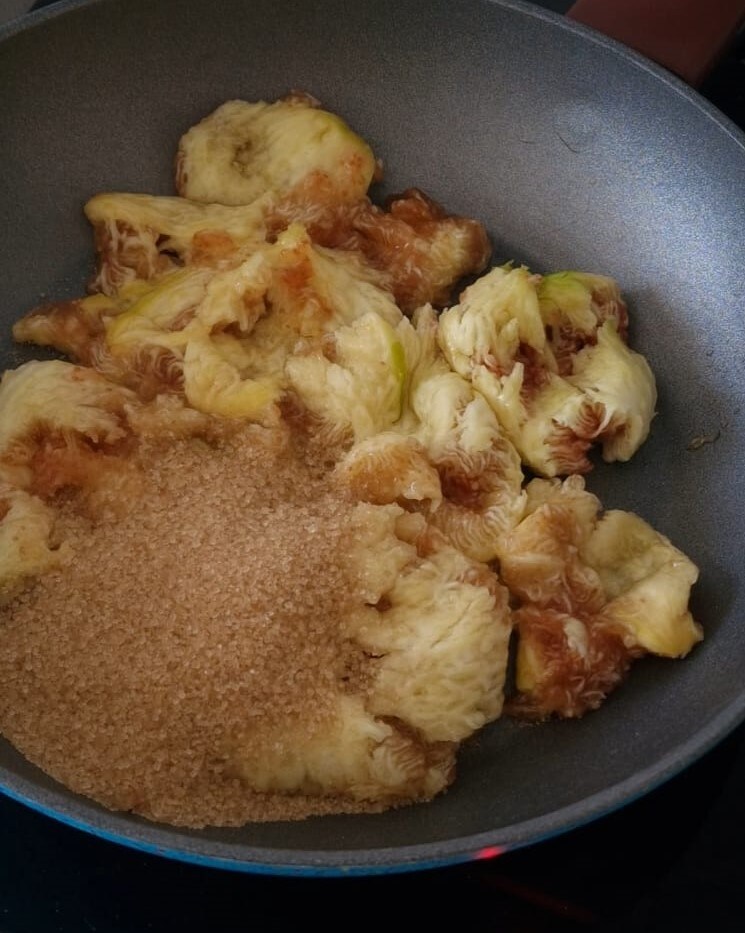 Bereid de vulling: Schil de vijgen en prak ze met een vork in een pan.