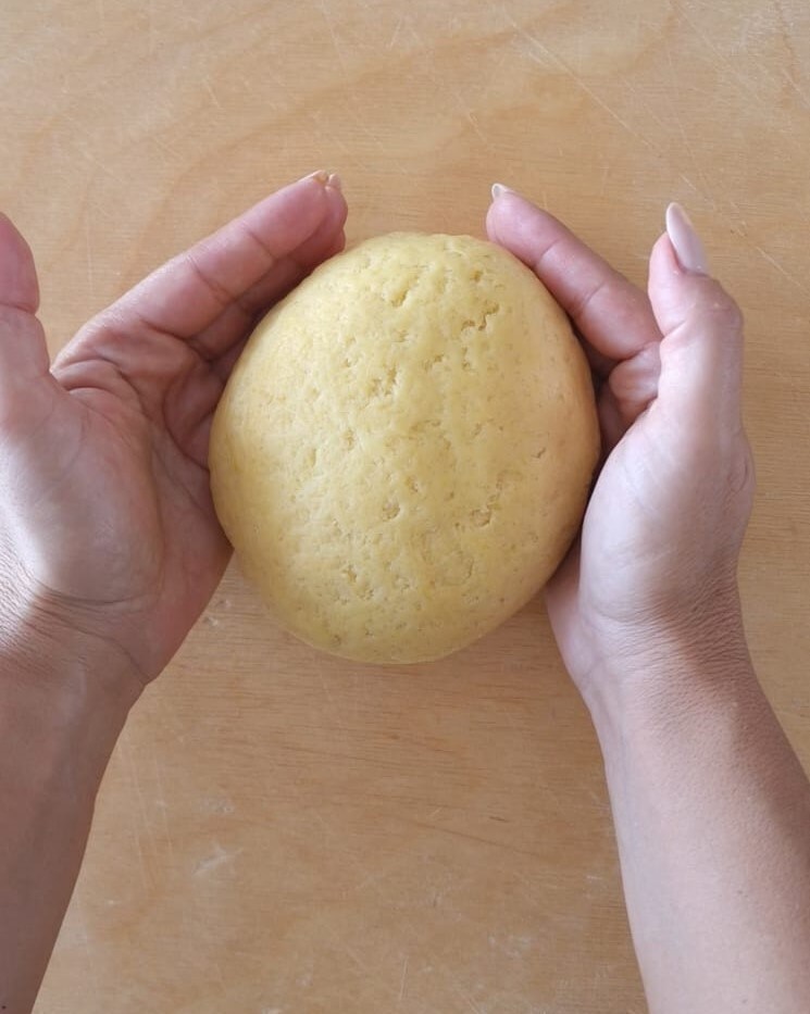 Haal het deeg uit de koelkast en rol het uit met een deegroller tot een lap van ongeveer 5 mm dik.