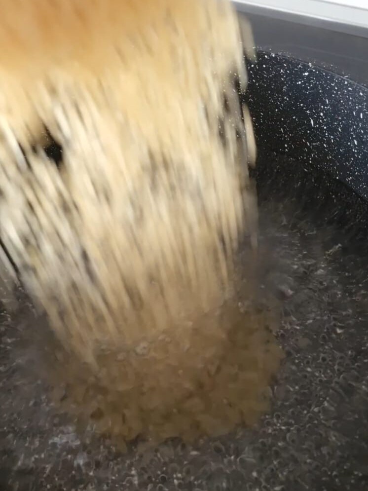 Begin met het koken van de rijst in gezouten kokend water, giet het daarna af, meng het met een beetje olie en laat het afkoelen.