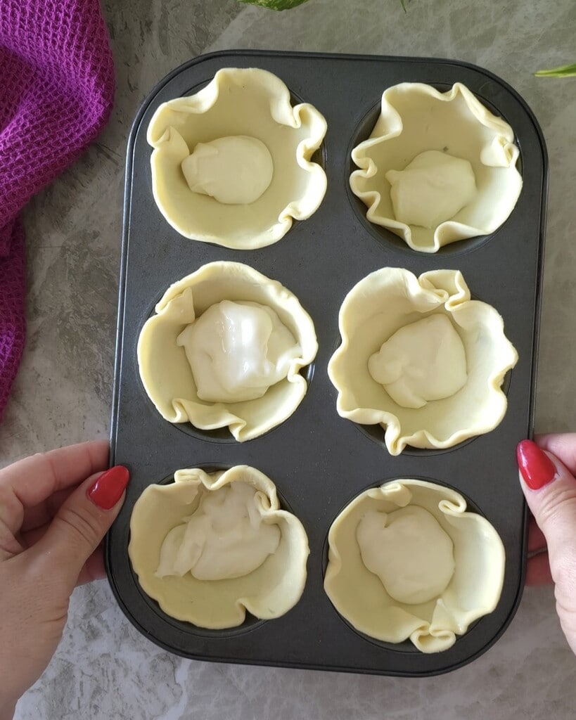 Op dit punt leg je ze in licht geoliede muffinvormpjes en prik je de bovenkant met een vork lichtjes in.