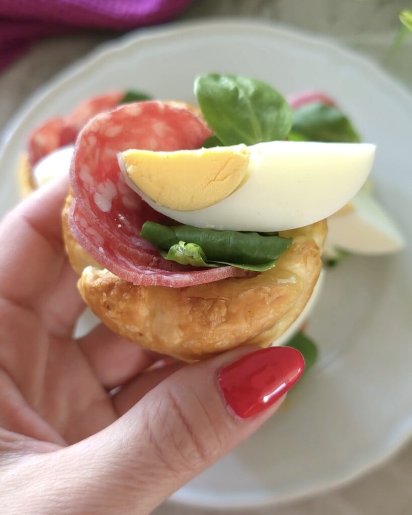 Paasmandjes zijn een leuk idee, gemakkelijk en snel, om tijdens de feestdagen te serveren. Vrolijk en speels, het recept is echt eenvoudig en je hebt slechts een paar eenvoudige ingrediënten nodig: bladerdeeg, stracchino, salami.