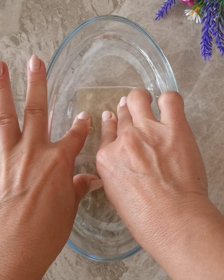 Laat de gelatineblaadjes weken in koud water en laat ze een paar minuten zacht worden, knijp vervolgens het overtollige water eruit en smelt ze samen met een paar eetlepels melk.