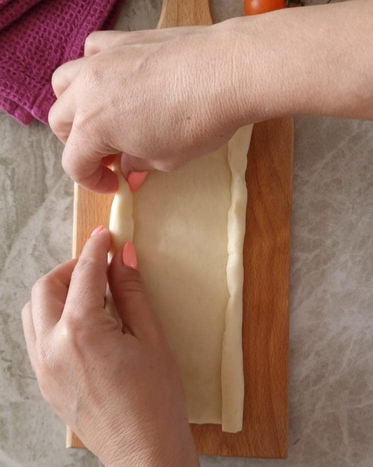 Rol de randen van elk gemaakt rechthoek op, waardoor er aan de langere zijden een klein koord ontstaat.