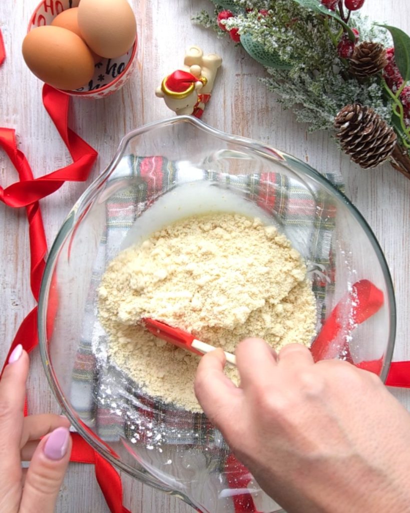 Voeg ook de poedersuiker en het amandelmeel toe.
