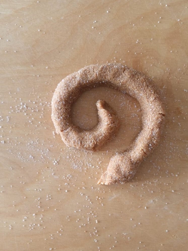 • Vorm twee opgerolde slangen, decoreer ze daarna.