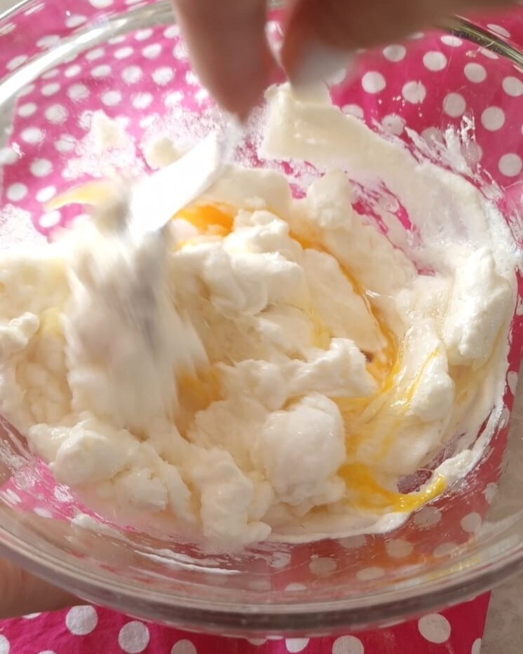 Werk in een kom de ricotta tot een crème met de suiker, de vanilline en het ei.