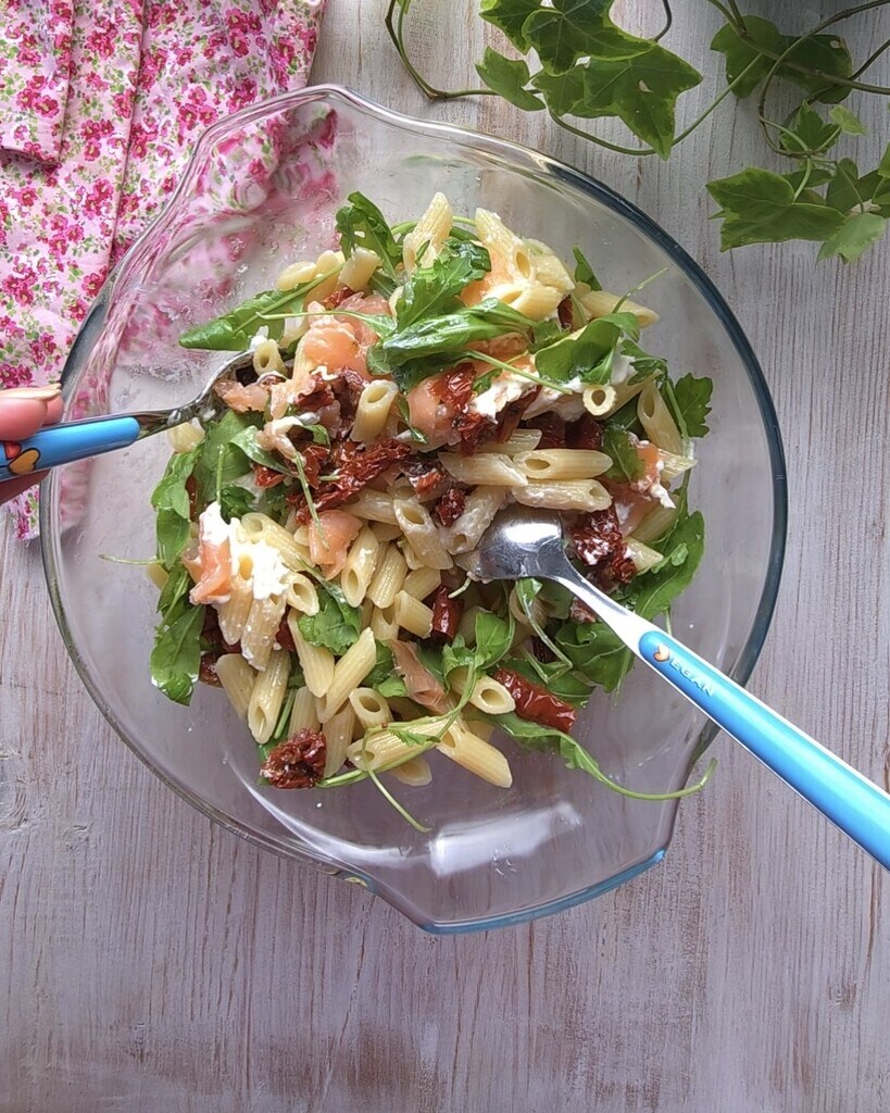 Zomerse pastasalade is een echt geweldig eerste gerecht. Eenvoudig en snel recept, perfect voor een lichte en verfrissende maaltijd. Ik hou ervan om zomerse eerste gerechten te bereiden, mijn favoriete recept is koude pasta met bresaola en rucola. Ook heerlijk zijn aardappelsalade met tomaat en mozzarella of spelt salade met courgettes en tomaten. Pastasalade is al op zich een voedzaam gerecht dat vreugde brengt, kleurrijk en smaakvol, en kan worden geserveerd voor een zittende lunch of staande buffet. Ik raad aan om het een dag van tevoren te bereiden zodat het goed kan marineren. Meng goed voor het serveren en laat eventueel een tang bij de hand voor een tweede ronde!