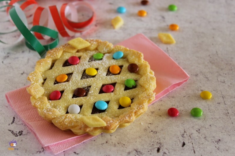 Zoals ik al zei, de basis is zanddeeg, dus als je geen zin hebt om te kneden, kun je altijd de kant-en-klare versie gebruiken, en vervolgens vullen met je favoriete smeerbare crème en de bovenkant versieren, eenmaal gebakken, met veel smarties.