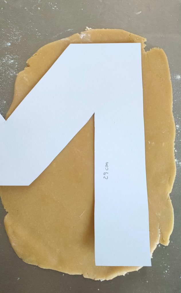 • Voeg eventueel de twee helften van de letter samen en zet de eerste bakplaat in de koelkast. Herhaal de operatie voor de tweede M en zet ondertussen de oven aan.