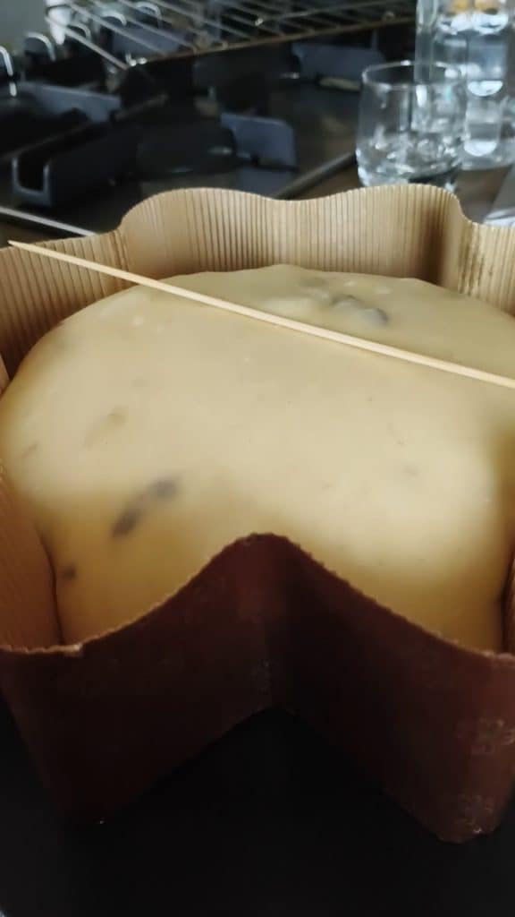 Voeg in meerdere keren de panettone-aroma toe en zorg ervoor dat het goed in het deeg wordt opgenomen zonder dat het zijn elasticiteit verliest. Eindig altijd met de vensterproef.