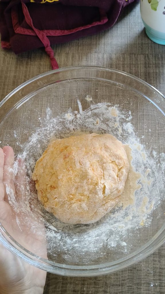 Juist deeg: moet zacht maar niet kleverig zijn; als de pompoen erg vochtig is, voeg 1 eetlepel extra bloem toe.