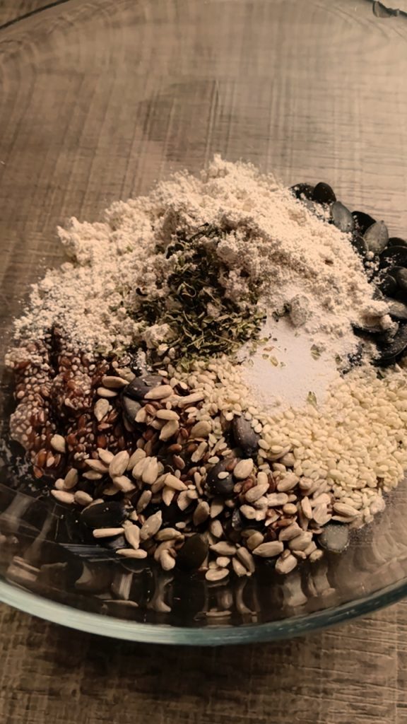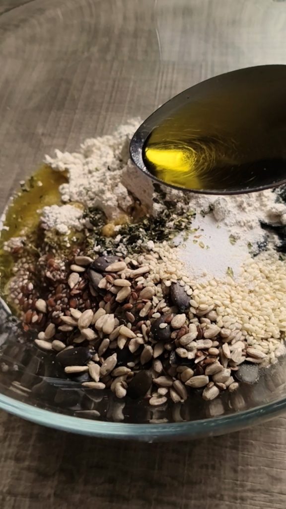Het is een veelzijdig recept omdat je zaden kunt toevoegen of weglaten naar persoonlijke smaak, evenals kruiden; ik heb oregano gekozen, maar je kunt ook paprika, rozemarijn, bieslook en vele andere smaakmakers gebruiken.