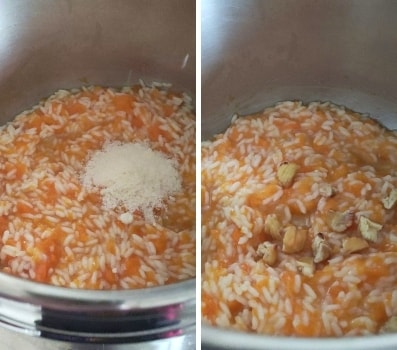 – Bak in een grote pan de fijngesneden ui of sjalot met 3/4 eetlepels olie en de rode peper (optioneel); voeg de radicchio toe, laat het op smaak komen door te roeren met een houten lepel en blus af met rode wijn. Laat het verdampen en breng op smaak met een snufje zout. Kook op laag vuur ongeveer 5 minuten, dan uitzetten.