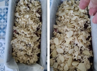 – Bedek de oppervlakte van de pruimen met de kruimels en strooi er geschaafde amandelen over. Eindig met een eetlepel bruine suiker en bak ongeveer 35 minuten (de satéprikker moet vochtig maar niet kleverig uit het deeg komen). Laat afkoelen en decoreer, indien gewenst, met een beetje poedersuiker of bruine suiker.