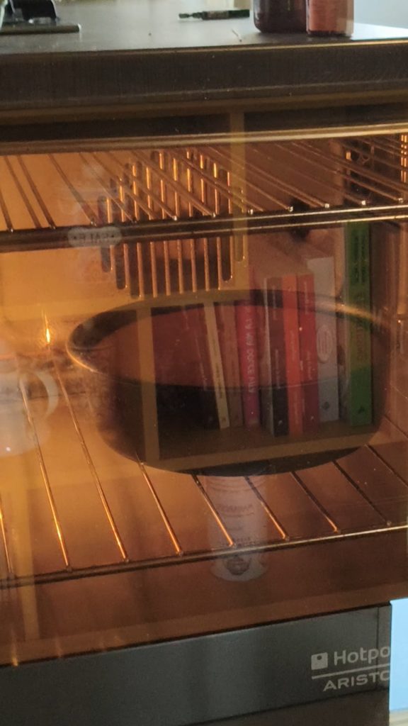 Het blijft dagenlang zacht en dat vond ik heel leuk in de dagen daarna. Dus open een fles goede rode wijn en we maken samen de Rode wijn taart met cacaocrème.