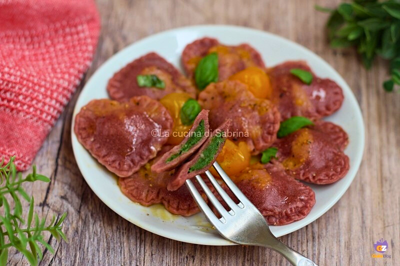 Het recept voor roze ravioli gevuld met magere vulling is perfect voor Valentijnsdag of elke andere gelegenheid.