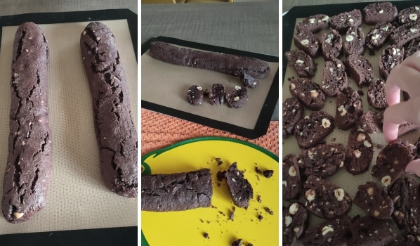 – Na het bakken van de rolletjes gedurende ongeveer 15 minuten, laat ze een beetje afkoelen en snijd ze met een gekarteld mes (een broodmes is prima). Leg de tozzetti één voor één op de bakplaat en grill ze enkele seconden (zorg ervoor dat ze niet verbranden). Draai ze om en herhaal de handeling