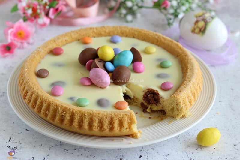 Inmiddels is de zachte taart de ster geworden van veel van mijn zoetigheden .. zoals bijvoorbeeld de red velvet, of de happiness taart omdat je geen grote vaardigheid nodig hebt om de basis te maken; het is veelzijdig en vaak hoeft het niet eens te worden bevochtigd. Dus de mogelijkheid hebben om het ook als paasdessert voor te stellen, is voor mij een grote voldoening!