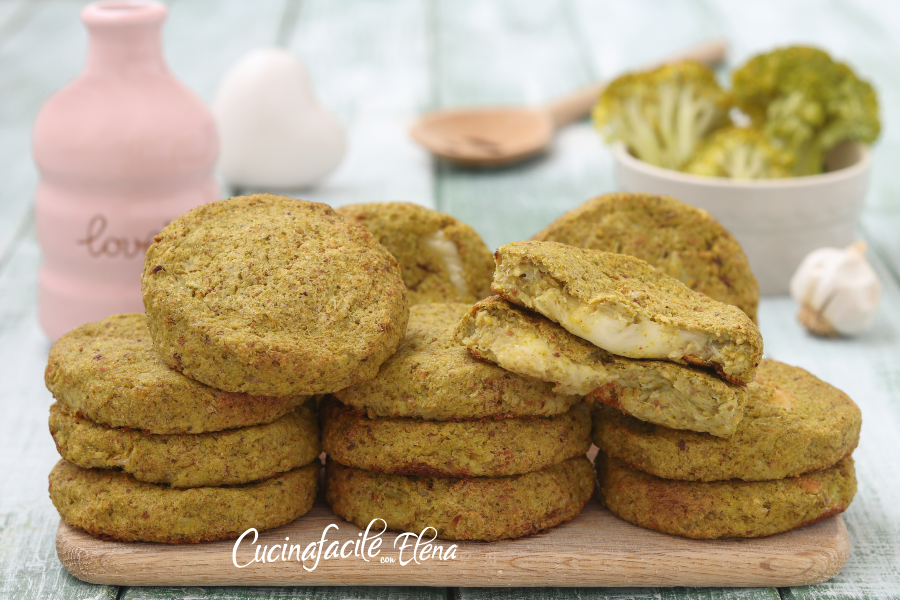 De broccoli plaatkoekjes zijn eenvoudige, snelle en heerlijke groentekroketten, gebakken in de oven en met een smeuïge vulling. Ik had wat gekookte broccoli over en in een paar minuten, met alleen een keukenmachine (of mixer), maakte ik deze heerlijke platte balletjes, licht en zonder eieren, die ook bij Matilde erg in de smaak vielen. De broccoli plaatkoekjes zijn in een paar minuten klaar en zullen in een mum van tijd verdwenen zijn; het is een vegetarisch recept dat zowel jong als oud blij zal maken!