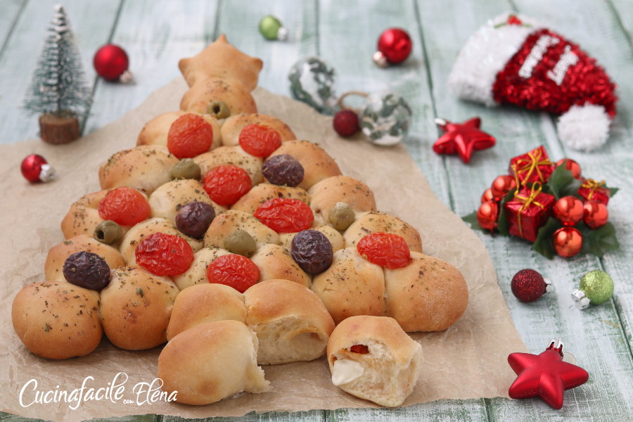 De kerstboom van gevulde broodjes is een snel, smakelijk en heerlijk voorgerecht voor de feestdagen, een recept dat je absoluut moet maken. Elk jaar maak ik mooie, creatieve maar eenvoudige kerstgerechten, dus besloot ik een kleine kerstboom te maken met kleine gevulde broodjes. Ik heb kaas, salami, mortadella en olijven gebruikt, maar je kunt natuurlijk de vulling kiezen die je wilt! De kerstboom van gevulde broodjes is in een paar minuten klaar, het is zacht, mals en zonder rijzen; je maakt het en bakt het direct. Je zult indruk maken en alle gasten verrassen zonder uren in de keuken door te brengen en zonder stress, je zult een grote indruk maken met weinig en je kunt het ook van tevoren maken!