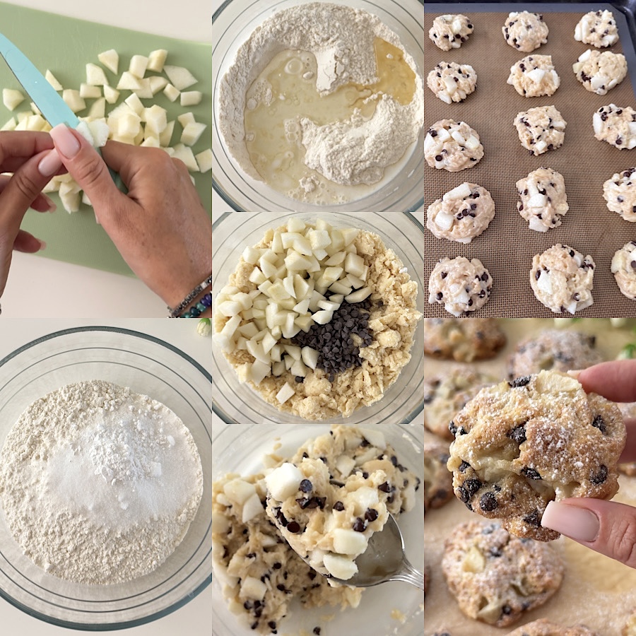 De perenkoekjes zijn heerlijke, zachte en geurige koekjes boordevol chocoladedruppels die in enkele minuten en met weinig en eenvoudige ingrediënten worden bereid. Op het platteland hebben we veel peren geplukt, ik heb er een paar gebruikt om deze eenvoudige en heerlijke zoetigheden te bereiden en ze gingen als warme broodjes! Deze perenkoekjes zijn perfect voor ontbijt, tussendoortje of als dessert, ze worden bereid zonder eieren en zonder boter en je hoeft je handen niet eens vies te maken om ze te maken, een simpele lepel is voldoende!
