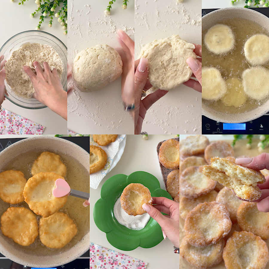 De ricottelle zijn super makkelijk en snel te maken. Doe eerst de ricotta (die moet heel droog zijn, als je verse ricotta gebruikt, laat deze dan eerst uitlekken voordat je hem gebruikt), de suiker, de melk, de bloem, het bakpoeder, de vanille en een snufje zout in een kom en maak een zacht en homogeen deeg.