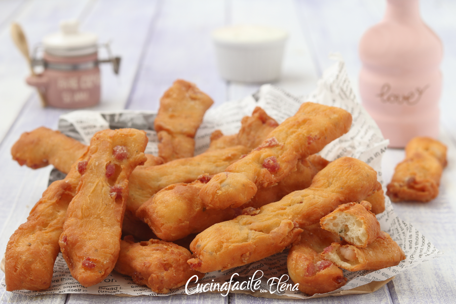 De zoute stokjes met yoghurt en spek zijn een super smakelijk, slim en echt verrukkelijk recept. Jullie hielden van mijn geweldige spekborrelhapjes, velen van jullie vroegen me of ze gefrituurd konden worden en mijn antwoord was nee. Dus, ik dacht aan een perfect recept voor een aperitief of als voorgerecht en ja, ik heb ze gefrituurd 😀 De zoute stokjes zijn klaar in 10 minuten en zijn zonder rijzen, je maakt ze en bakt ze meteen, ze zijn knapperig aan de buitenkant, zacht en mals van binnen, geurend en super lekker, ze absorberen geen olie tijdens het koken, om ze nog lekkerder te maken, heb ik ze geserveerd met een heerlijke yoghurtsaus, om je vingers bij af te likken!