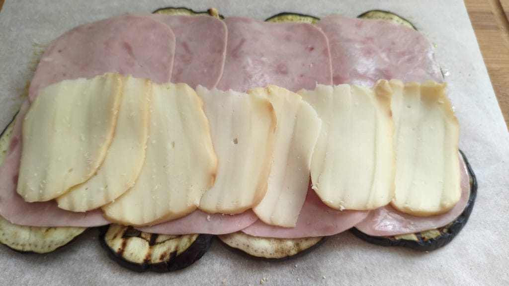 • Zo maak je de auberginerol met ham en scamorza klaar: