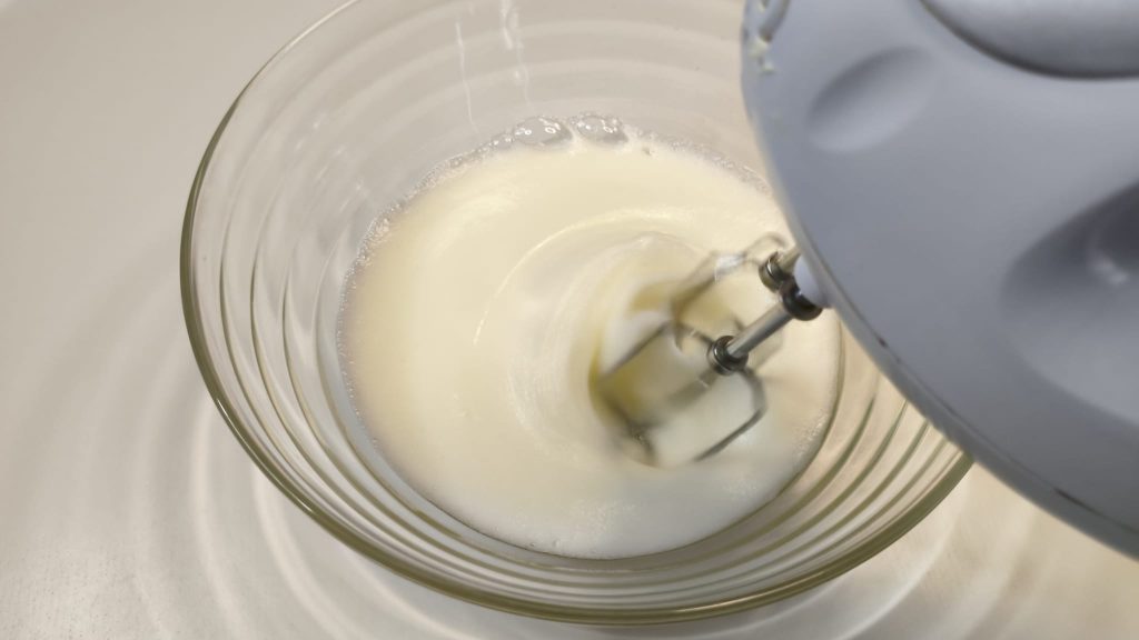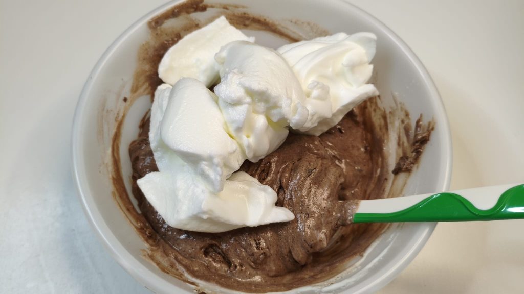 • Voeg de stijfgeklopte eiwitten toe aan het mengsel en meng van onder naar boven om het beslag niet te laten inzakken.