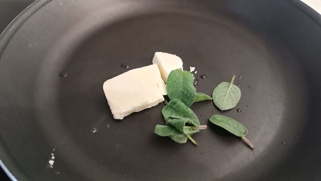 • Smelt ondertussen in een pan de boter samen met de salie,