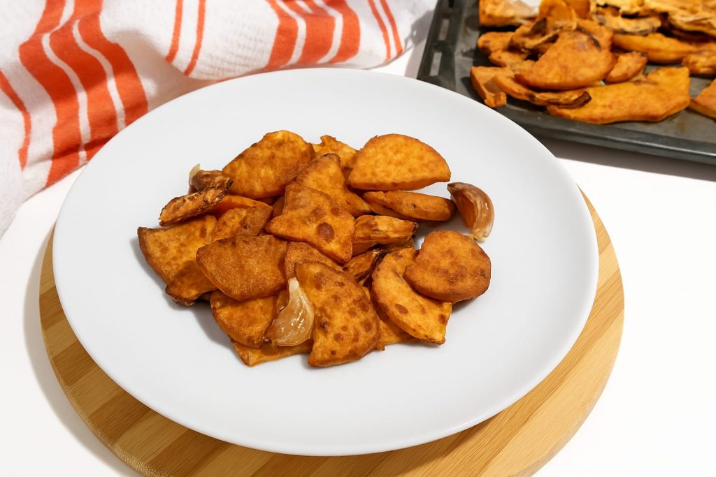 Als je een nog snellere versie wilt, bak de bataat in een airfryer op 190°C gedurende 15-18 minuten, schud het mandje halverwege. Ze worden super knapperig met heel weinig olie.