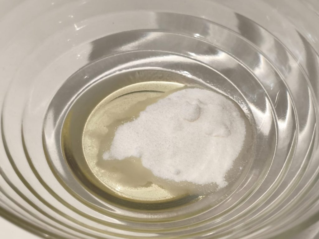 Mix in een kom de olie met de suiker en voeg dan het ei toe en meng goed.