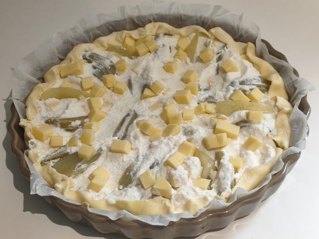 Ik heb het zo gemaakt: ik heb de venkel gekookt totdat ze zacht waren, daarna heb ik het bladerdeeg uitgerold direct in de bakvorm. In een kom heb ik romige ricotta gemengd met nootmuskaat, een snufje zout en galbanino in blokjes gesneden. Een eenvoudige maar smaakvolle crème, perfect om de venkel te begeleiden. Ik vulde de bodem van het bladerdeeg met de venkel en de ricottacrème, goed gladstrijken en in de oven!