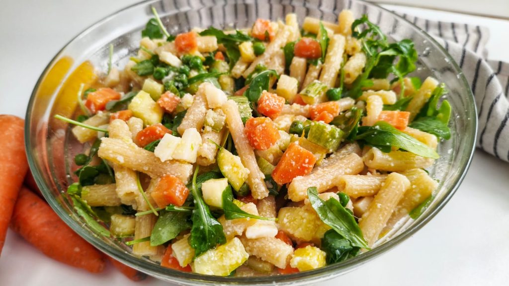 Koude pasta met courgettes, wortels en erwten is een perfect gerecht voor de zomer: fris, licht en vol van smaak. Het is eenvoudig en snel te bereiden, ideaal voor een smakelijke lunch zonder te veel tijd in de keuken door te brengen.