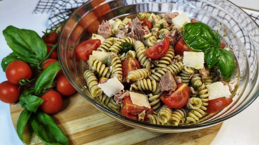 Het mooie is dat het een snelle en veelzijdige koude pasta recept is, ook ideaal om mee te nemen naar kantoor, voor een picknick of voor een lichte diner met vrienden. En dan bevalt het altijd iedereen, zelfs de kleintjes.