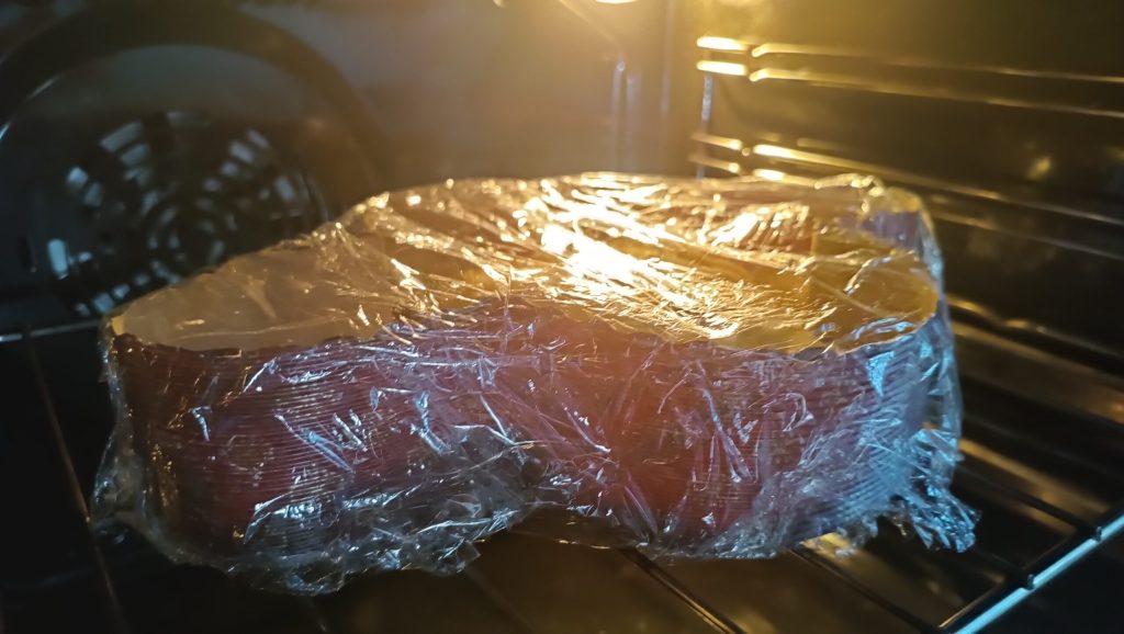 • Laat het rijzen in de oven bij uitgeschakelde licht voor ongeveer 3 uur, bedekt met een vel plasticfolie