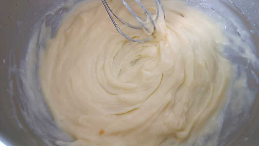 Bereid ondertussen de room door suiker aan de dooiers toe te voegen en ze met een garde te kloppen.