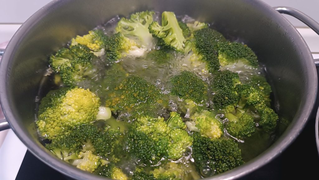 Giet de helft van de broccoli af en laat ze smaken in de pan